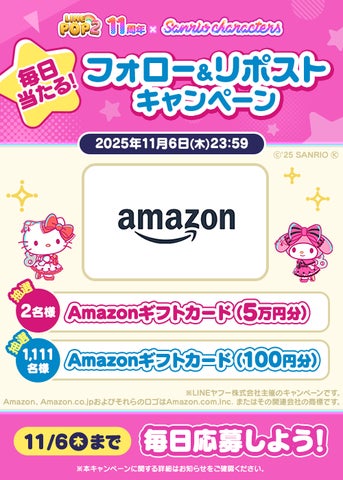 LINE POP2公式X(旧Twitter)アカウント(@LINE_POP2_JP)をフォローし、対象投稿をリポストすると、抽選でAmazonギフトコードやQUOカードPayが当たります。
