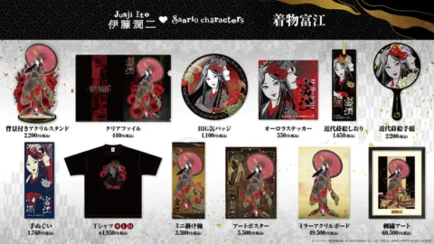 伊藤潤二先生からは、今回のコラボ第二弾について「嬉しいことに、サンリオさんのキャラクターとのコラボ第二弾が実現しました。今回はギャル富江に加え、和服姿の富江、そして双一も登場。ハローキティやマイメロディ、クロミ、ポムポムプリンとお友だちの“マフィン”、ハンギョドン、バッドばつ丸、シナモロール、タキシードサム、ポチャッコと仲良く共演が実現しました。サンリオさんが生み出した愛らしい子達によって、私の生み出したホラーなキャラクター達が、どんどん浄化されていくのを感じます!本当にありがとうございます!そして今回のコラボもたくさんの皆様方に楽しんでいただきたいです!」とのコメントが寄せられています。