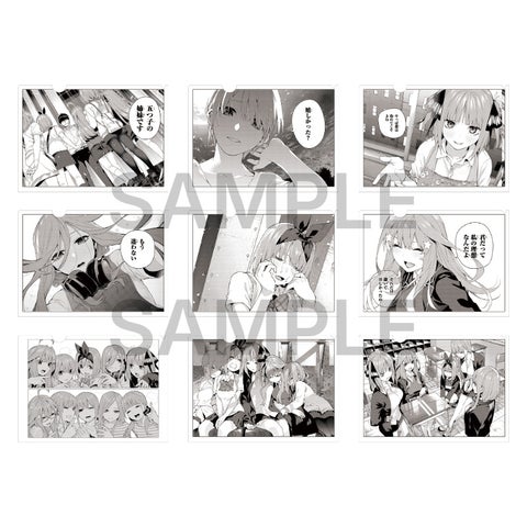 期間中、『五等分の花嫁』関連グッズ商品を500円(税込)お買い上げごとに、「思い出のひとコマ(キャラカード)(全15種)」がランダムで1枚プレゼントされます。