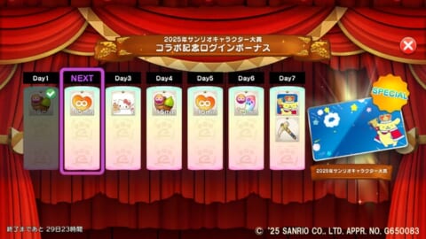 ※「2025年サンリオキャラクター大賞」のコラボ壁紙を入手するには7日間ログインが必要です。