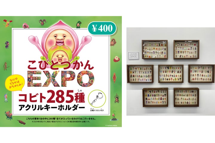 これまでに発見、報告された固有種を除く285種すべてのコビトのアクリルキーホルダーがカプセルトイとして登場。1回400円で、コンプリートを目指すのも楽しみの一つです。