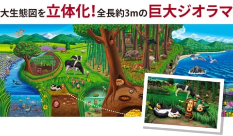 大生態図を立体化した全長約3メートルの巨大ジオラマが登場。海、川、山、地面など、様々な生息地のコビトを観察できます。木の空洞や草木の隙間、砂の中など、隅々まで楽しめるでしょう。