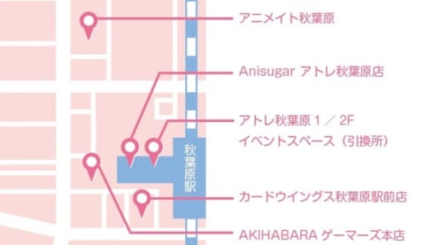 都内Anisugar店舗や、秋葉原を含む主要都市の各店舗でポップアップフェアが同時開催されます。アトレ秋葉原では手に入らない限定アイテムが多数取り揃えられ、特別なラインナップを楽しめます。
