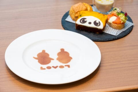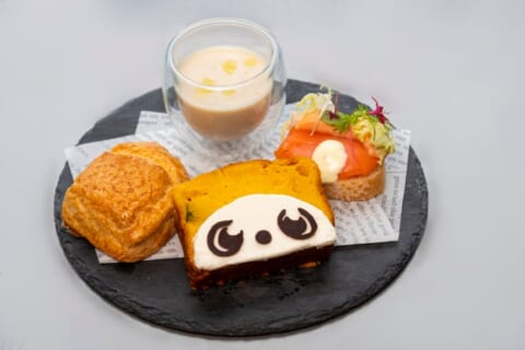 心和むアフタヌーンティータイムをさらに楽しんでいただくため、取り皿にはチョコスプレーで『LOVOT』のシルエットを描いたプレートが用意されます。また、デザートスタンドには、『LOVOT』の愛らしい丸い瞳をモチーフとしたパウンドケーキが添えられ、遊び心あふれるスイーツとともに優しいひとときが演出されます。