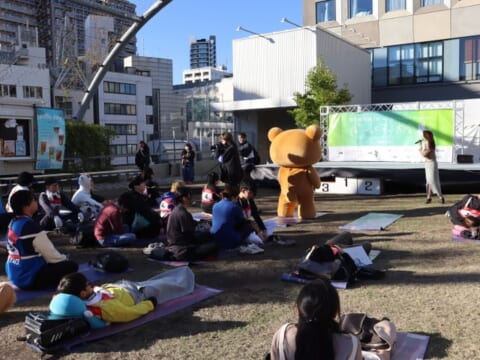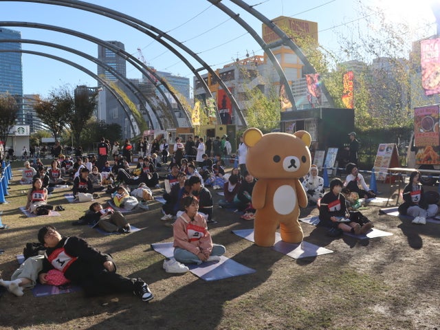 リラックマは、今年夏に大阪・関西万博で開催された『ぼーっとする大会』大阪大会に続き、今回の『第3回TOKYOぼーっとする大会』にも参加し、大会参加者とともに「ぼーっとする時間」を過ごしました。