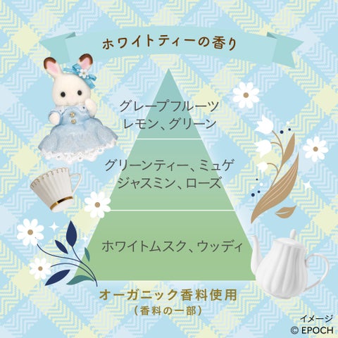 香りは、楽しげなティーパーティーの雰囲気に合わせた“ホワイトティーの香り”を採用。
