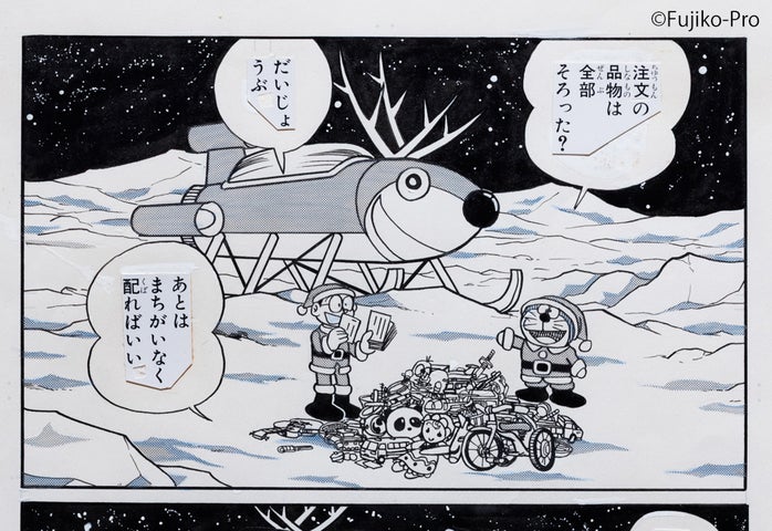 1階「展示室Ⅰ」では、『ドラえもん』の中からクリスマスにちなんだお話のまんが原画を展示します。「サンタメール」1話丸ごと(扉絵は除く)を原画で鑑賞できる貴重な機会です。