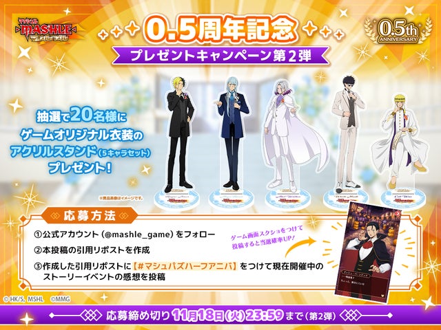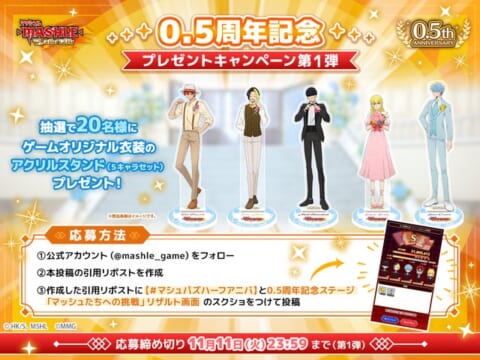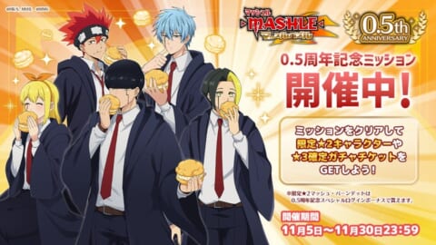 『マッシュル-MASHLE-マッスルパズル』は、2025年11月5日(水)より0.5周年記念イベントを開催いたしました。復刻ガチャやログインボーナス、ミッション、記念ステージ、そしてオリジナルアクリルスタンドが当たるプレゼントキャンペーンなど、豪華な内容が多数実施されています。