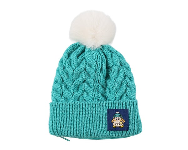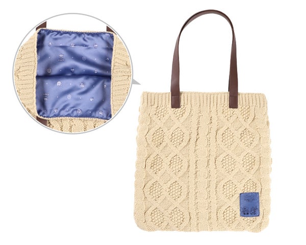 「カービィカフェ WINTER」の開催に合わせて、ケーブル模様のニット素材を用いたバッグやポーチ、刺繍ブローチ、箔押しポストカードセットなど、新作グッズも多数登場します。