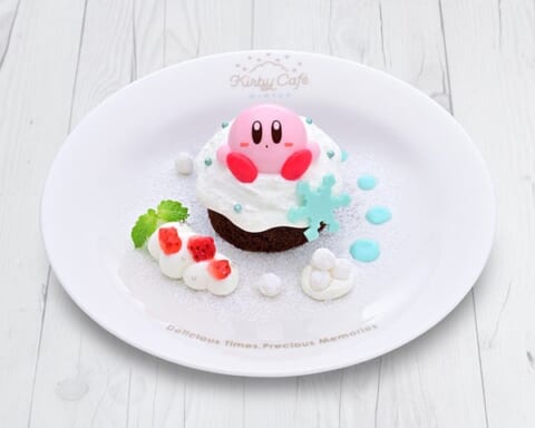 - ガトーショコラにつもったふわふわクリームの上でカービィがひとやすみする様子を表現したデザートです。WINTER限定デザインのスーベニアミニプレートが付属します。