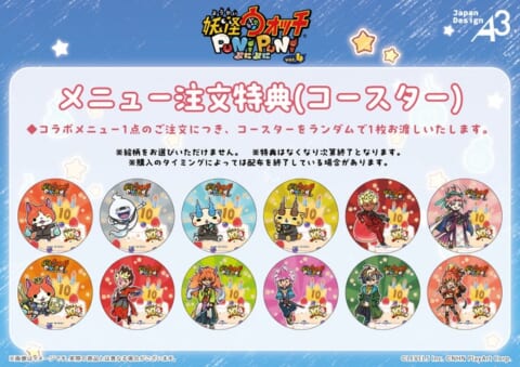 コラボメニューを注文すると、特典としてコースター(全12種)がランダムでプレゼントされます。