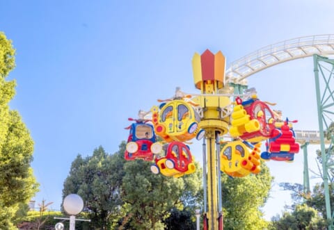 回転しながら空へ舞い上がる小型の飛行塔「くるくるヘリコプター」にも、『LOVOT』と一緒に乗車できます。ひらパーの人気キャラクター「ピピン」と「ポピー」があしらわれたカラフルなヘリコプターから園内を360°見渡せ、気分はまるでパイロットです。
