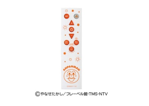 リモコンは、アンパンマンの笑顔のイラストが描かれたオリジナルデザインを採用しています。多機能リモコンにより、上記の調光やお休みタイマーなどの操作が手元で簡単に行えます。