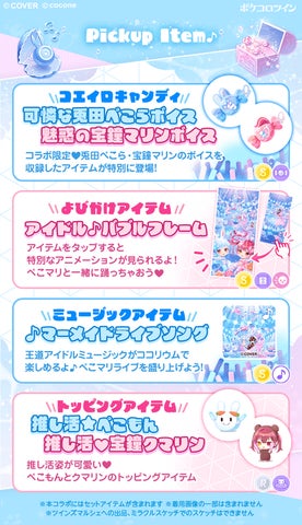 このガチャでは、マーメイドとなったぺこマリの衣装やココリウムの限定アイテム、さらに新規録り下ろしのボイスアイテムが手に入ります。