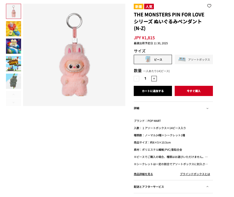 POP POP MARTの人気キャラクター「ラブブ(LABUBU)」が2025年11月10日(月) 15:00から再販受け受付中です。