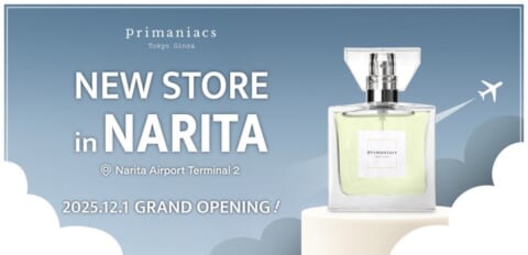 キャラクターフレグランスブランド「primaniacs(プリマニアックス)」が、2025年12月1日(月)に成田国際空港 第2ターミナルに新店舗をオープンします。日本の玄関口から、人気キャラクターの香りを世界に発信する拠点として、多様なラインナップとオープン記念企画が展開されます。