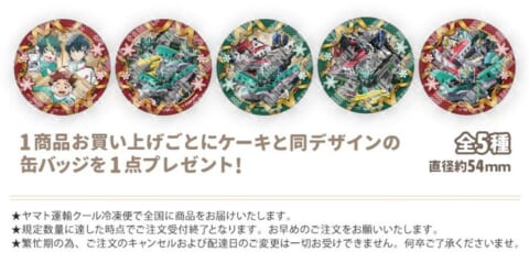 ケーキ1点ご購入につき1つ、特典缶バッジ