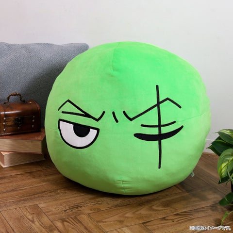「もふっと ゾロのまりも BIGクッション」は、直径約50cmという存在感抜群のサイズが特徴です。座る、抱える、寝るといった多様な使い方が可能で、インテリアとしても部屋に映えるデザインとなっています。もちふわとした触感が追求されており、リラックスタイムをより豊かに彩るアイテムです。