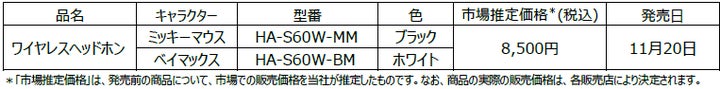 ディズニーストアとVictorの共同企画により、ディズニーキャラクターの「ミッキーマウス」と「ベイマックス」をデザインしたワイヤレスヘッドホン「HA-S60W」が2025年11月20日に発売されます。