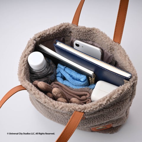 冬シーズンに最適なふわふわなボア素材を使用した「ボアバッグ」は、キュートなミニオンのワッペンがアクセントです。グレーとブラウンの2種類が用意されており、好みに合わせて選択が可能です。