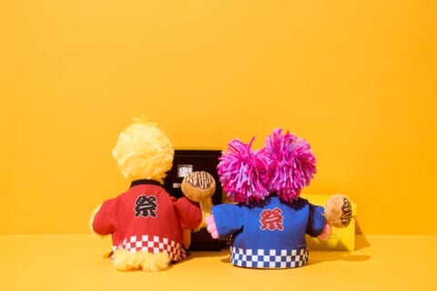 定番和柄の市松模様をあしらった法被姿のコスチュームです。胸元には「SESAME STREET MARKET」のブランドロゴ、背中には「祭」の文字がプリントされています。表裏で赤と青の2色を楽しめるリバーシブル仕様で、ぬいぐるみの手につけられるたこ焼きモチーフのアクセサリーもセットです。 ※Sサイズのぬいぐるみのみ着用可能。(Sサイズぬいぐるみ展開キャラクター:エルモ、クッキーモンスター、ビッグバード、アーニー、バート、アビー、オスカー、ジュリア、グローバー、ゾーイ、ロジータ、カウント伯爵、スーパーグローバー、オレンジオスカー)