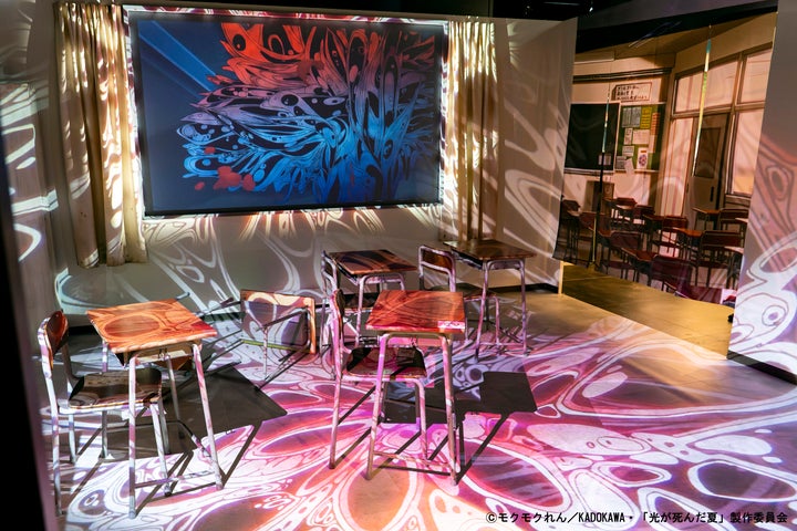 希望ヶ山高校の教室が再現されており、教室内の印象的なシーンを映像を通して体感できます。