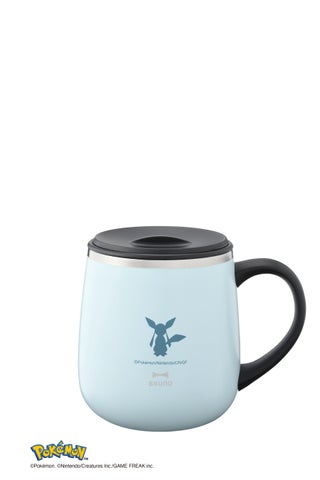リーフィア、グレイシア、ニンフィアをそれぞれイメージした、グリーン、ブルー、ピンクの3色展開のステンレスマグです。真空二重構造により、冷たいドリンクも温かいドリンクも長時間適温をキープします。ざらっとしたマットな質感とシックなカラーは、大人のテーブルにもなじむデザインです。スライド式飲み口の蓋つきで、リモートワークやベランピング、アウトドアなど様々なシーンでの持ち運びにも対応します。
