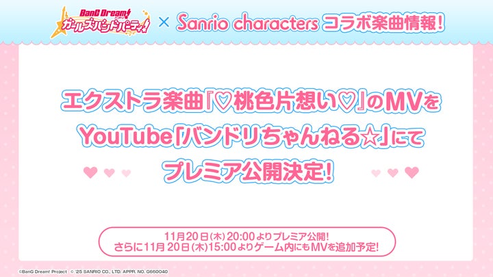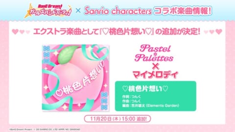コラボPart2の開催を記念し、2025年11月20日(木)15時にエクストラ楽曲『♡桃色片想い♡』が追加されます。