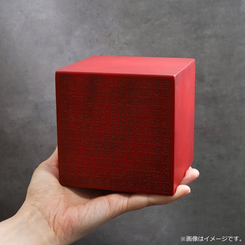 本製品は、作中に登場するロードポーネグリフのデザインを忠実に再現しており、約10cm四方のサイズ感がデスク上で圧倒的な存在感を放ちます。本体素材にはステンレスが採用されており、その重厚感がペーパーウェイトとしての機能性を高めるとともに、高級感を演出します。ボックスは紙とウレタンで構成され、収納時も本体を保護します。