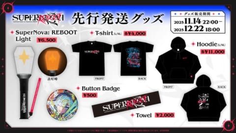 本公演の開催に合わせ、「Hoshimachi Suisei Live “SuperNova: REBOOT”」ライブグッズが本日2025年11月14日(金)より解禁されました。