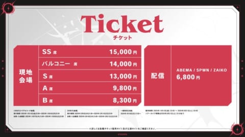 配信チケットは、ABEMA、SPWN、ZAIKOの各プラットフォームにて販売されます。