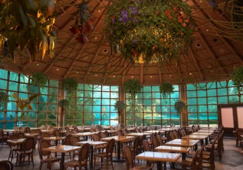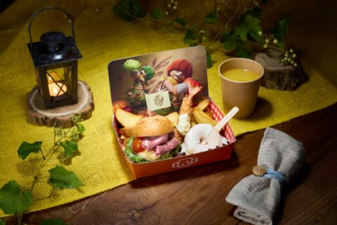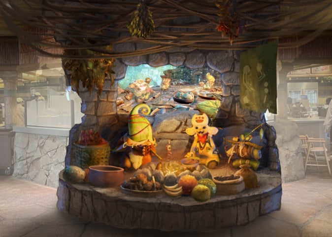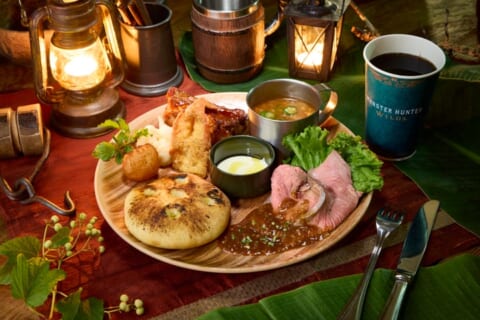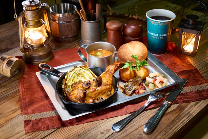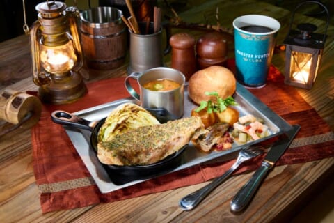 ロストワールド・レストラン(ジュラシック・パーク)では、テーマ・レストラン「モンスターハンターワイルズ ~モリバーの宴~」が開催されます。広大な世界を旅するハンターが探索するフィールドのひとつ、緑豊かな緋の森にある獣人族“モリバーのアジト”で開催される“モリバーの宴”を再現。作品世界そのままの“超リアル”な店内で、焚き火を囲むモリバーやオトモアイルーに出迎えられ、モリバーがふるまう焚き火料理を味わうことで、“ハンターの休憩”を全身で体感できる食体験が提供されます。