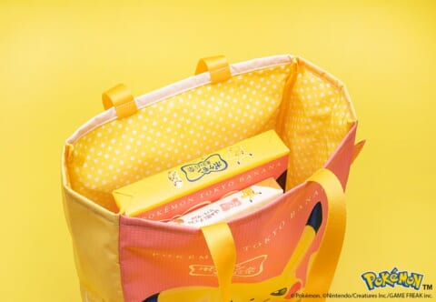 「ポケモン東京ばな奈」の5周年を記念して登場する「ピカチュウバッグセット」は、第1弾として発売された「ピカチュウ東京ばな奈」のパッケージデザインをモチーフにしたトートバッグが特徴です。