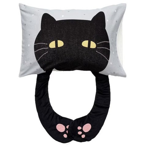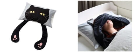 デコネコの腕部分がアイマスクとして機能し、顔を包み込むことで光を遮断します。腕はマジックテープで固定できるため、ずれにくい設計です。 |