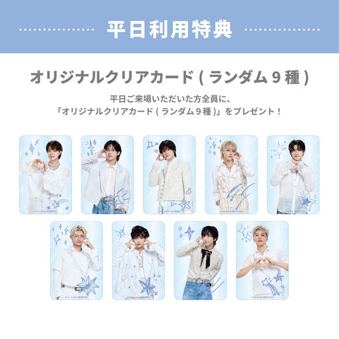 平日に来場された方に「オリジナルクリアカード(全9種)」がランダムで1枚プレゼントされます。こちらはなくなり次第配布終了となります。