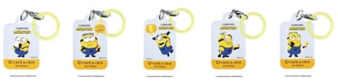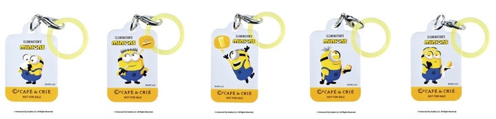 期間中、税込800円以上のお会計レシート2枚をレジで提示すると、全員に5種類の中からランダムで1つ「オリジナル ミニオンズ/アクリルチャーム」がプレゼントされます。傘の目印やキーホルダーとしても活用できるアイテムです。