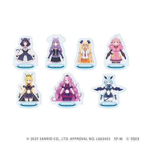 【セット1】と同様にショバフェスデザインを使用したプチサイズのアクリルスタンドです。シアン、チュチュ、レトリー、モア、ララリン、スモモネ、ういういの7キャラクターが登場します。 |