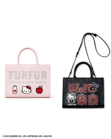- BLKには大胆に「はろぅきてぃ東京」の文字を、PNKには「FURFUR」ロゴと「HELLO KITTY TOKYO」のロゴをあしらったスクエア型のショルダーバッグです。糸刺繍とスパンコール刺繍を組み合わせ、ハローキティのワッペンを縫い付けた高級感あふれる仕上がりです。ショルダー紐は取り外し可能で、ハンドバッグとしてもお使いいただけるトップハンドル付きのデザインです。便利な内ポケットも付いています。WHTはオンラインストア、ルミネ新宿2店、ルミネ横浜店限定カラーです。
