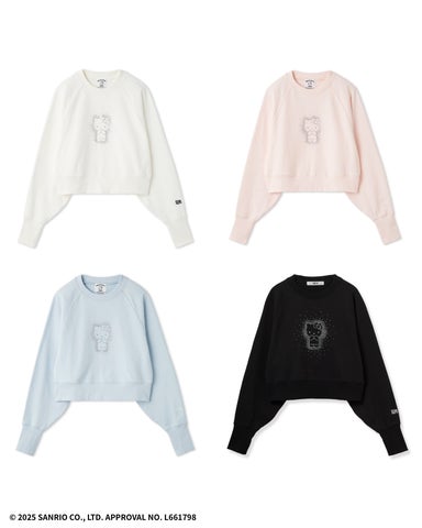 - 愛らしいポージングのハローキティをラインストーンで表現した華やかなスウェットプルオーバーです。小さなラインストーンでグラデーションを描き、儚げな印象を感じさせます。ゆったりとしたサイズ感ながらショート丈デザインのため、コーディネートのバランスがとりやすいサイジングです。BLKはオンラインストア、ルミネ新宿2店、ルミネ横浜店限定カラーとなります。