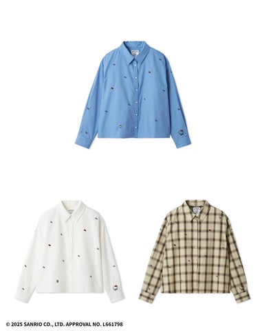 - ハローキティのリボンを全体に散りばめた遊び心あふれるシャツです。前身頃にはお友だちの「タイニーチャム」の刺繍を、袖口にはFURFURのロゴ上にハローキティが乗っている刺繍が施されており、細部までキュートな一着です。