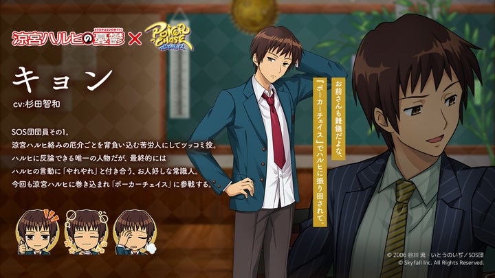 株式会社Skyfallが運営するバトロワ式オンラインポーカーゲーム『ポーカーチェイス』にて、TVアニメ「涼宮ハルヒの憂鬱」とのコラボイベントが、2025年11月26日(水)より期間限定で開催されることが決定しました。