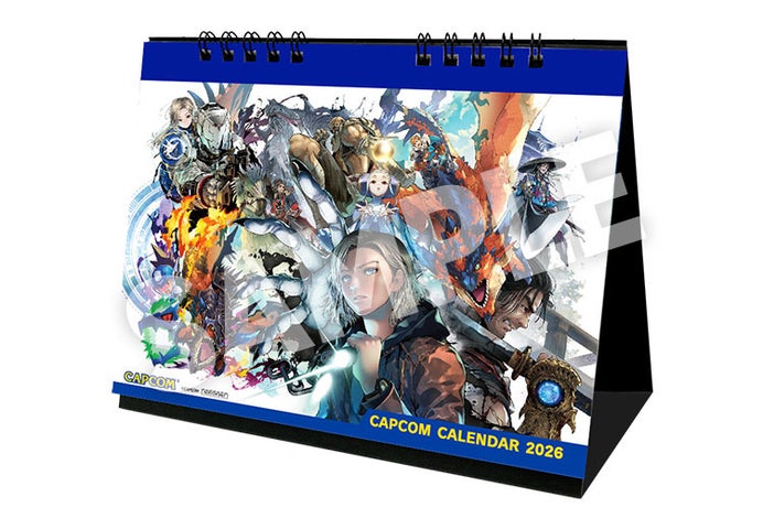 - 様々なカプコンタイトルのメインビジュアルがデザインされた卓上カレンダーです。