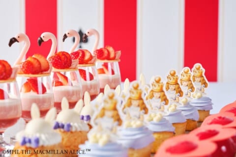 『アリスのストロベリーアフタヌーンティー』では、「不思議の国のアリス」の愛すべき登場人物をモチーフにしたスイーツと、シェフ特製のセイボリーが提供されます。