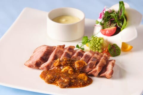• ステーキランチ(牛肉のステーキ、シャリアピンソース、ブーケサラダ添え/カリフラワーのクリームスープ)3,000円