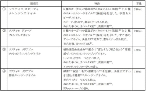 今回ポケモンスペシャルパッケージとして登場するのは、ソフティモのクレンジングオイル4品目です。それぞれの製品には特長があります。