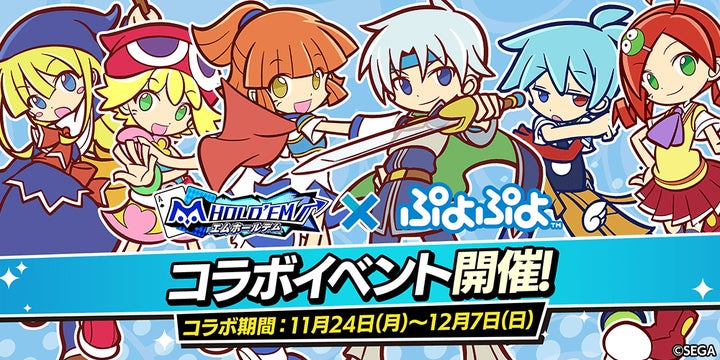 今回の復刻コラボイベントでは、国民的パズルゲーム「ぷよぷよ」の人気キャラクターが「m HOLD’EM」に再び登場します。