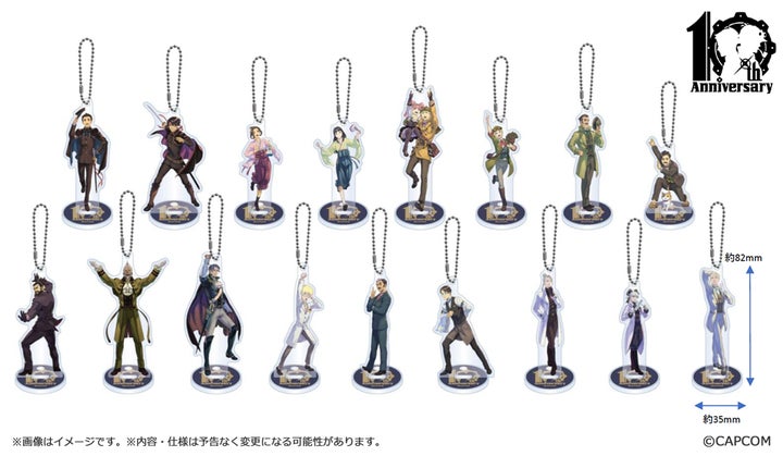 「流星のロックマン」シリーズからは厳選された16種、「大逆転裁判」シリーズ10周年記念としてアートディレクション・キャラクターデザインを手掛けた塗和也氏による描き下ろしイラストを使用した17種のアクリルスタンドキーホルダーコレクションがそれぞれ予約を開始しています。