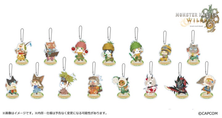 新シリーズとして、『モンスターハンターワイルズ』に登場するオトモアイルーやサポートアイルーたちのイラストが可愛らしいアクリルスタンドキーホルダーコレクションが予約受付中です。