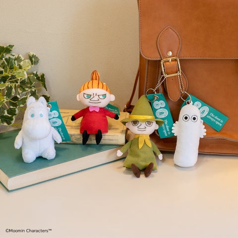 「ムーミン」「リトルミイ」「スナフキン」「ニョロニョロ」の4キャラクターから選べるマスコットバッジ。80周年チャーム付きで、バッグやポーチに付けておでかけを楽しめます。
