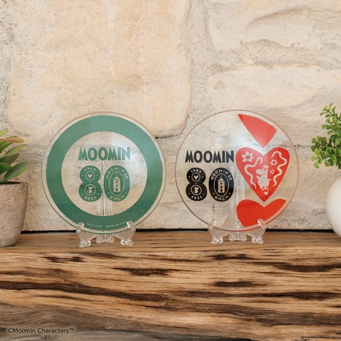 80周年ロゴがデザインされたガラス製のメモリアルプレート。記念アイテムとして飾るだけでなく、小物置きとしても活用できるデザインです。イーゼルは付属しません。